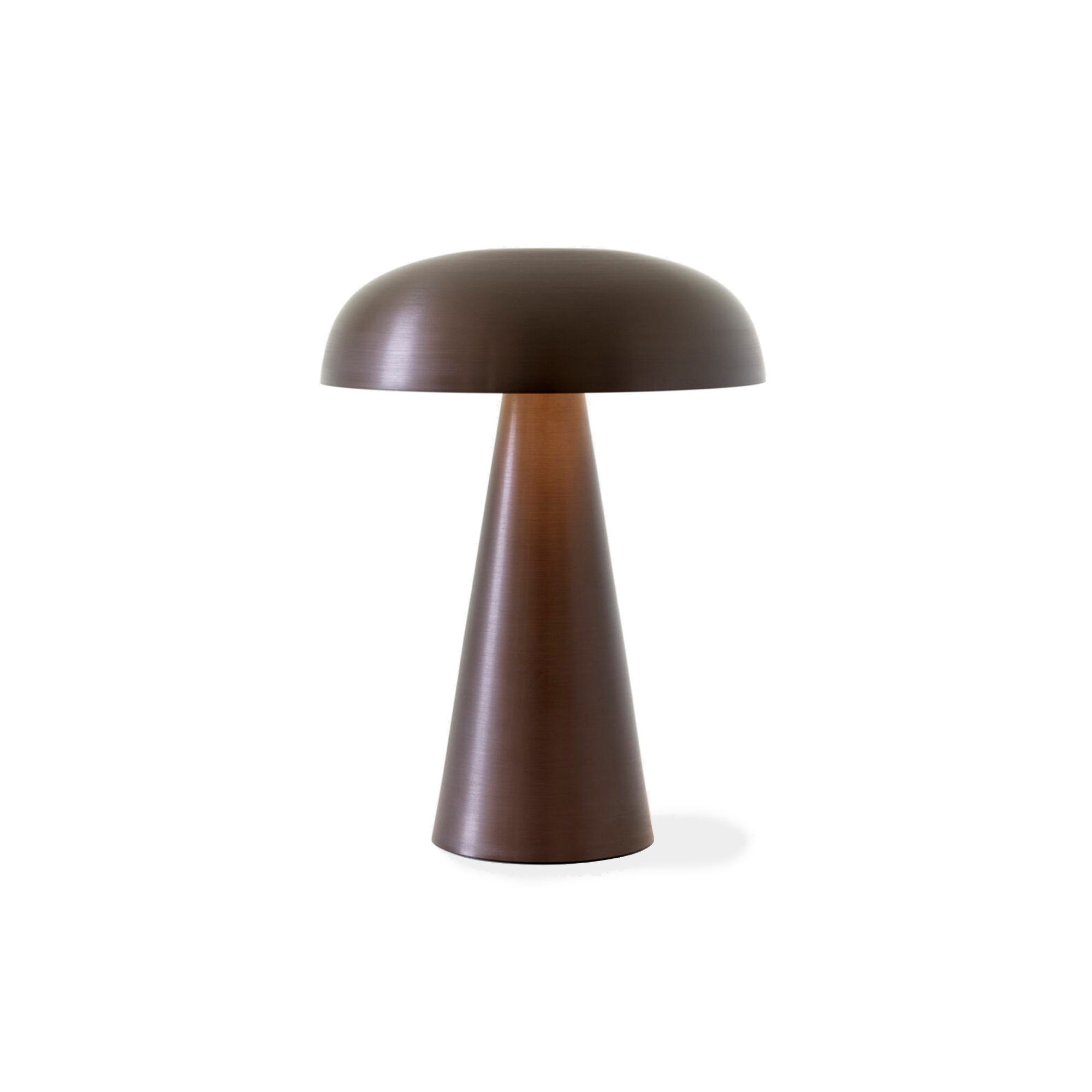 Match lighting to mood with Como SC53, a portable table lamp from Space Copenhagen. Crafted from anodized aluminium, Como’s sturdy base tapers up towards a softy curved, mushroom-shaped shade. This battery-powered lamp can operate for eleven hours at the highest setting, with an extra battery option that allows additional operating. It is easily recharged with a magnetic USB cable or a charging tray. As of Spring 2022, you can now find the Como lamp in two new and contemporary finishes: Stone Blue and Red Brown.