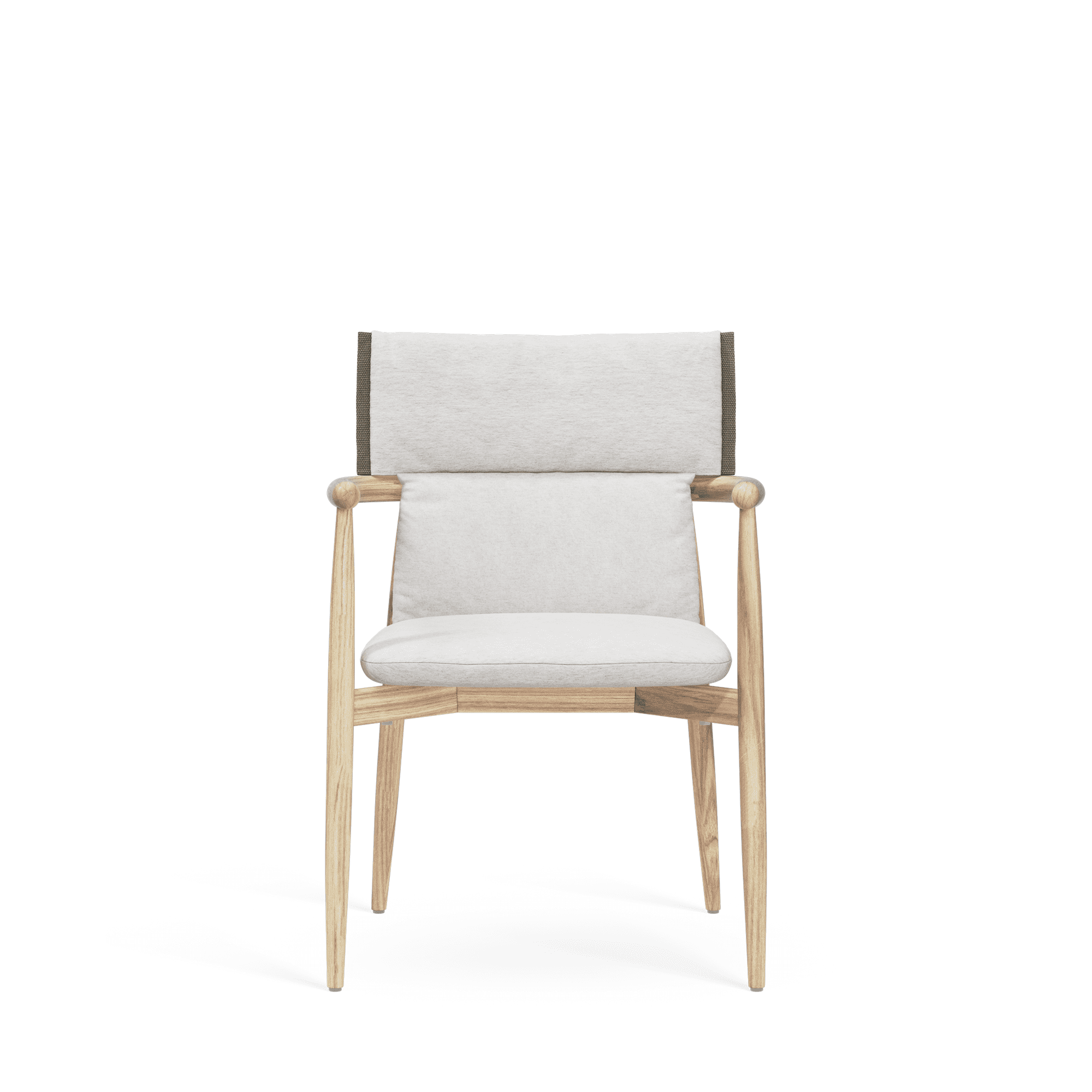 Designed by the design trio EOOS, the E008 Embrace Outdoor Dining Chair echoes the silhouette of the E005 Embrace Armchair. Created for supreme comfort outdoors, the chair is crafted from untreated teak that develops a unique patina over time. Designed to be used with or without its signature weather-resistant cushioned upholstery, the chair can also be stacked for convenience.