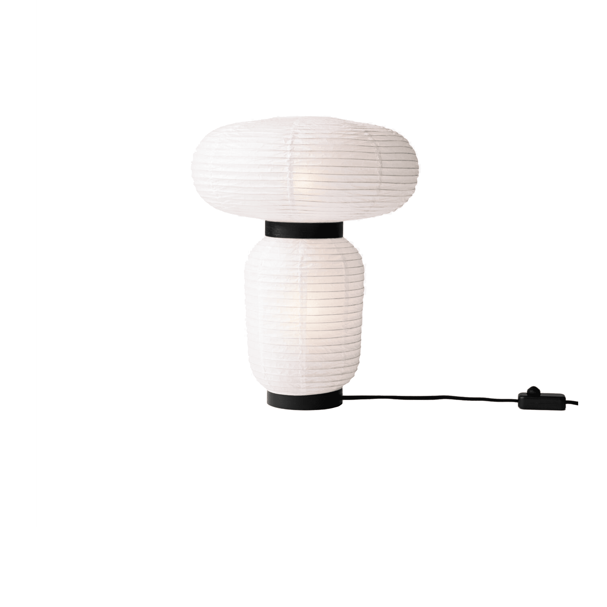 East meets West in Jaime Hayon’s playful tweak of a traditional Asian lantern in contemporary expression. Dating back centuries, paper lanterns have featured in Asia amongst the privileged and the poor, where different colours, shapes and sizes connote different meanings. Here Hayon has dispensed with cultural formalities to create a series of lamps all in white. Hand crafted with rice paper merging various sizes and shapes together. The series is comprised of three different lantern versions and a table lamp in ivory white rice paper with black stained oak accents.