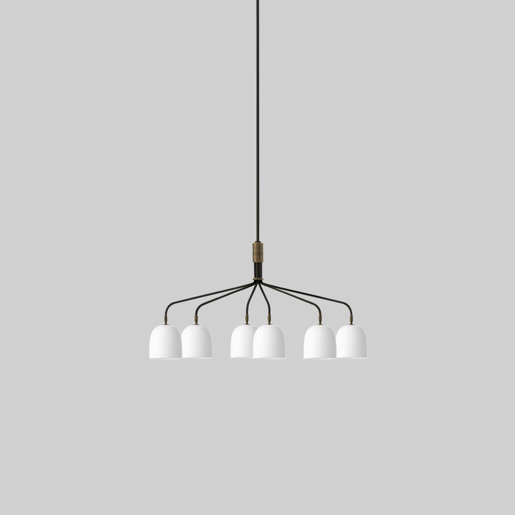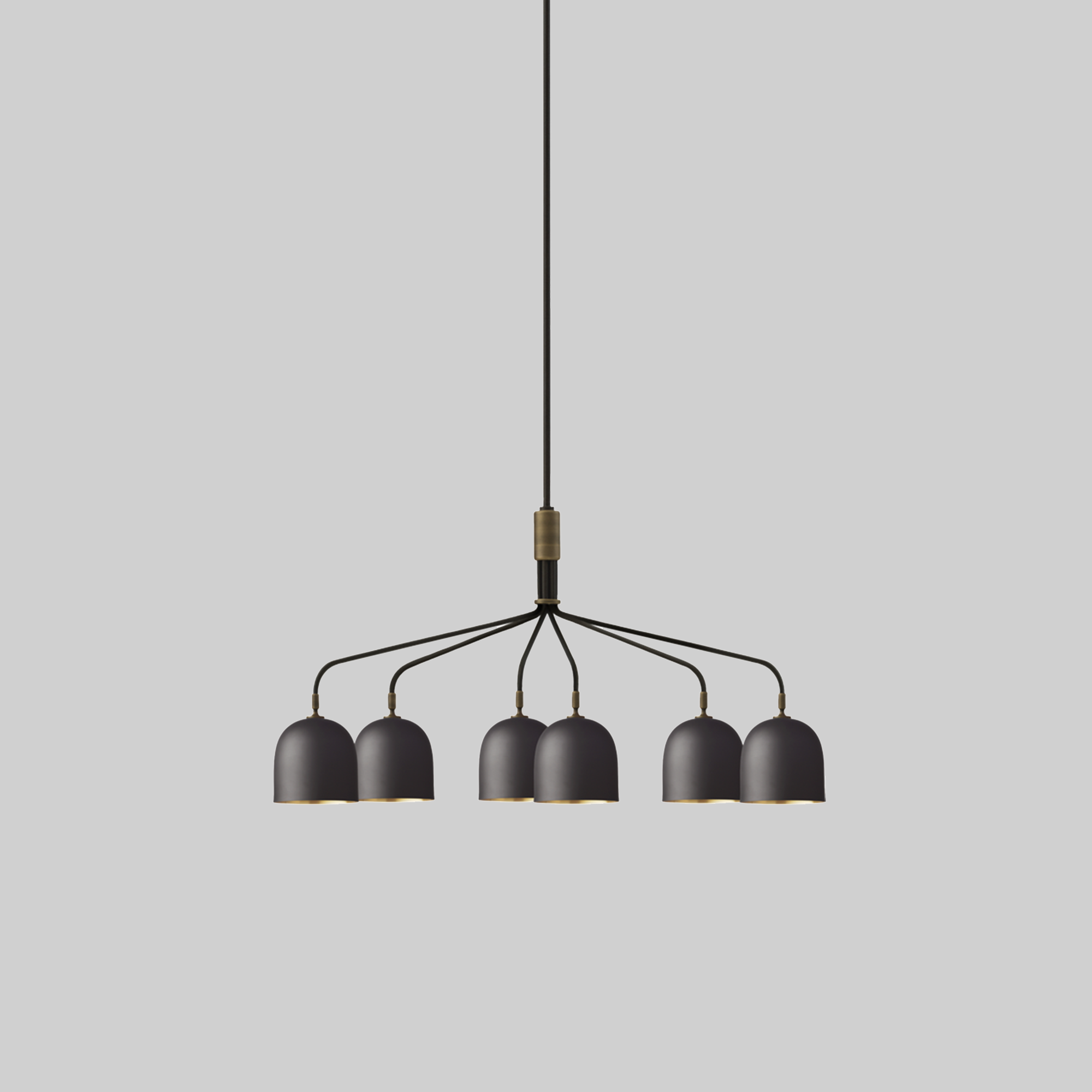 A grand gesture to grace public and private spaces, the Howard Chandelier’s warmth, strength and subtlety is Space Copenhagen’s distinctly Scandinavian celebration of New York’s industrial palette. Abundant with material and atmospheric references from the SoHo location of the Howard Hotel, for which they were originally designed, they exude a warm, tactile feel. The six slender, ‘octopus arms’ provide a modern and sophisticated shape, while the gunmetal brass shades with a brushed brass interior lend an industrial and functional aesthetic. For a more gentle effect, a bone china shade – providing softer, more glowing ambient light – can also be selected. The carefully crafted Howard Chandelier is the centrepiece of the Howard Collection which can be combined to create a highly coherent atmosphere in the home, hotel or boardroom.