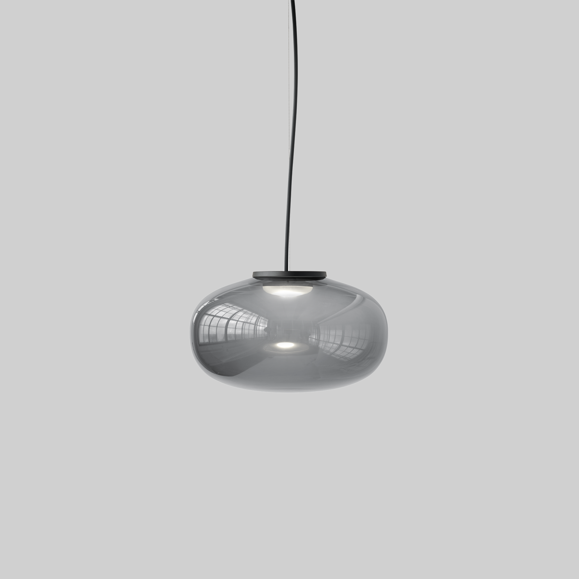 The Karl-Johan pendant lamp focuses on the soft yet distinct silhouette of its predecessor. The material combinations of the table and wall lamp have been removed, allowing the rounded glass form to shine brightest. A compact LED light source bounces light around the globes interior, creating a volume free of visual interference. The latest Karl-Johan family member has all the required ingredients, and nothing more.