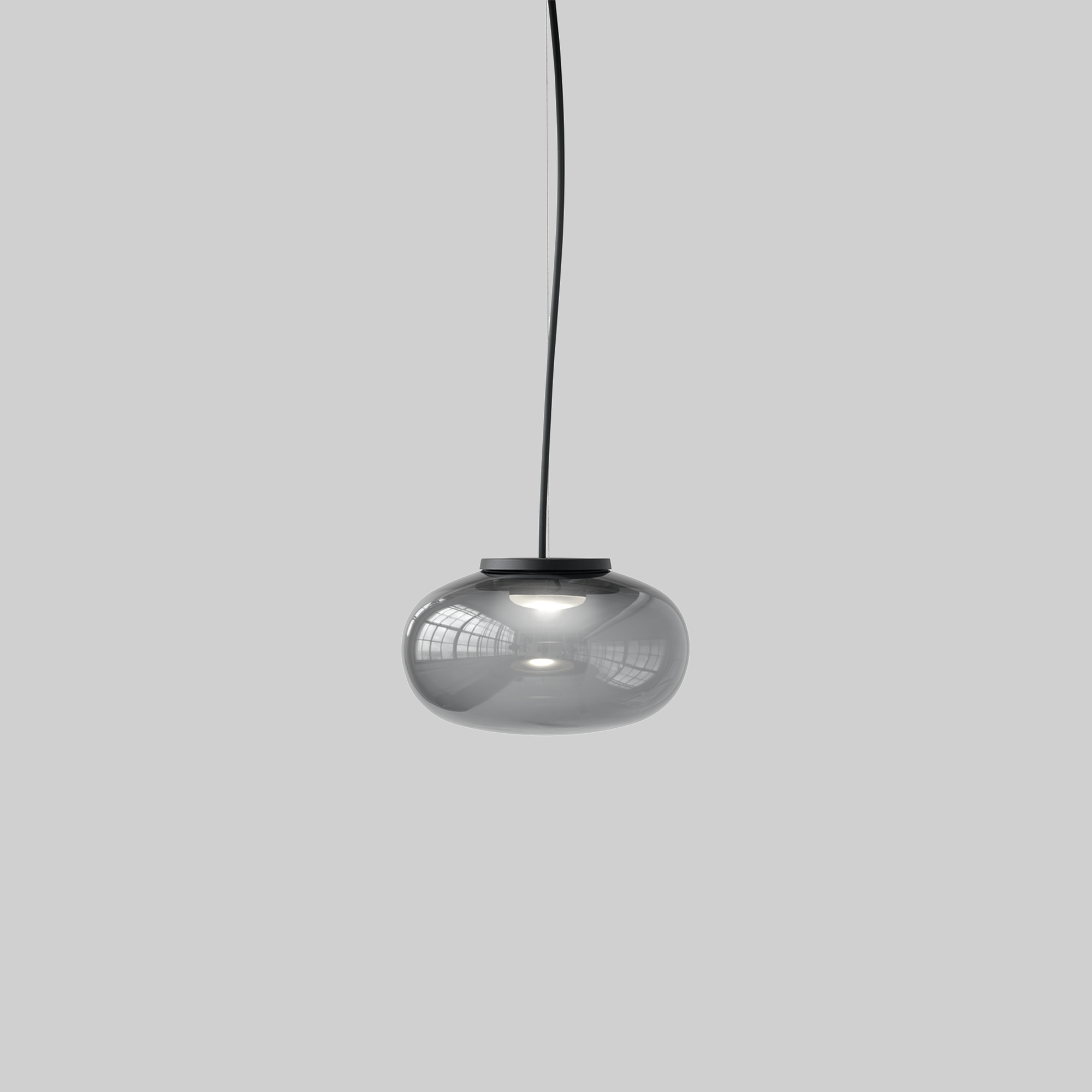 The Karl-Johan pendant lamp focuses on the soft yet distinct silhouette of its predecessor. The material combinations of the table and wall lamp have been removed, allowing the rounded glass form to shine brightest. A compact LED light source bounces light around the globes interior, creating a volume free of visual interference. The latest Karl-Johan family member has all the required ingredients, and nothing more.