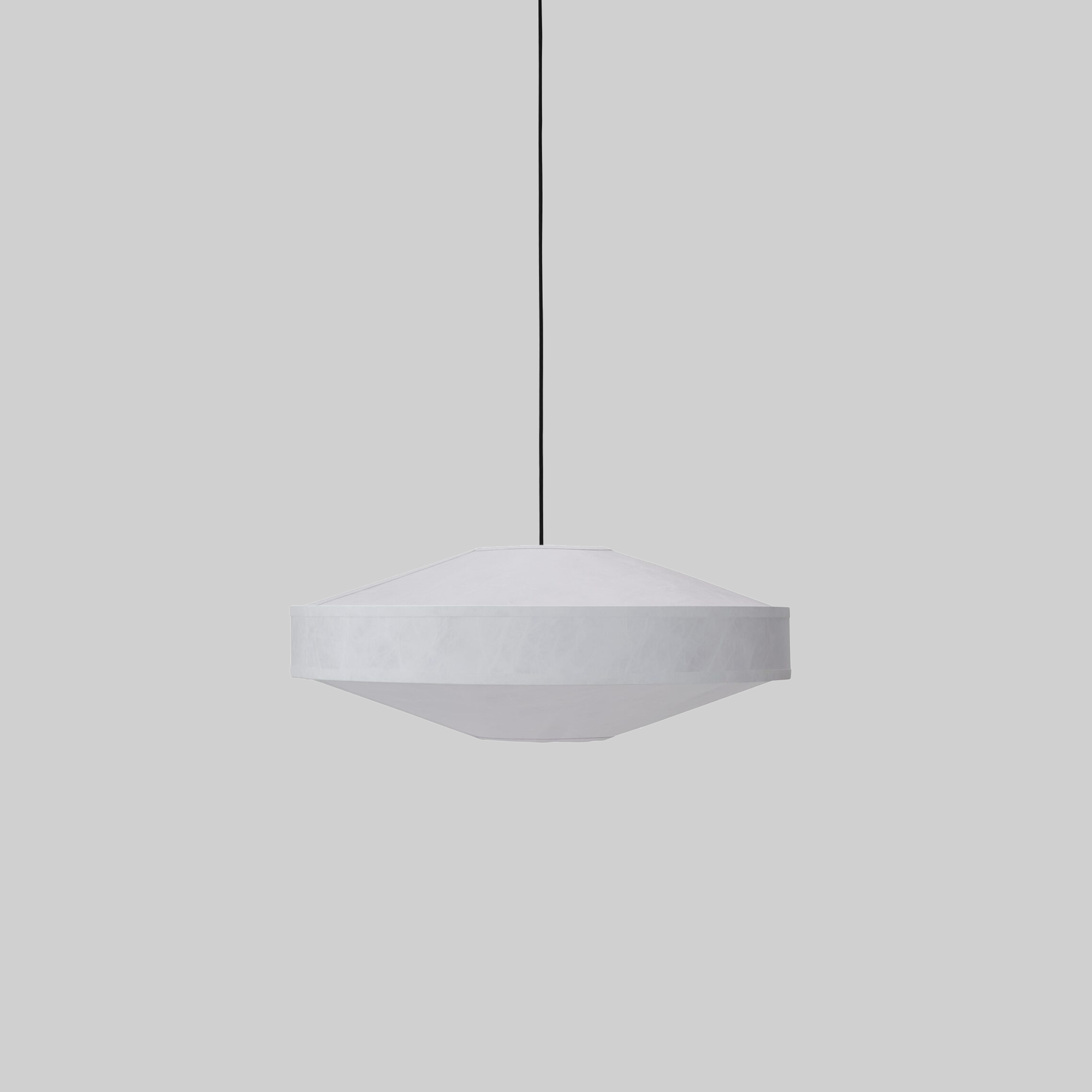 Kite is a work of proportion and abstraction, blending pure and geometric silhouettes with smooth, textured materiality. The same structural elements are adapted into three different sizes, each echoing the other like a tale that alters subtly with each retelling. Delicate taping contours the silhouettes, a technical refinement that enriches depth and contrast. Whether displayed together or separately, the Kite Pendant Lamps serve as a luminous sculptural element.