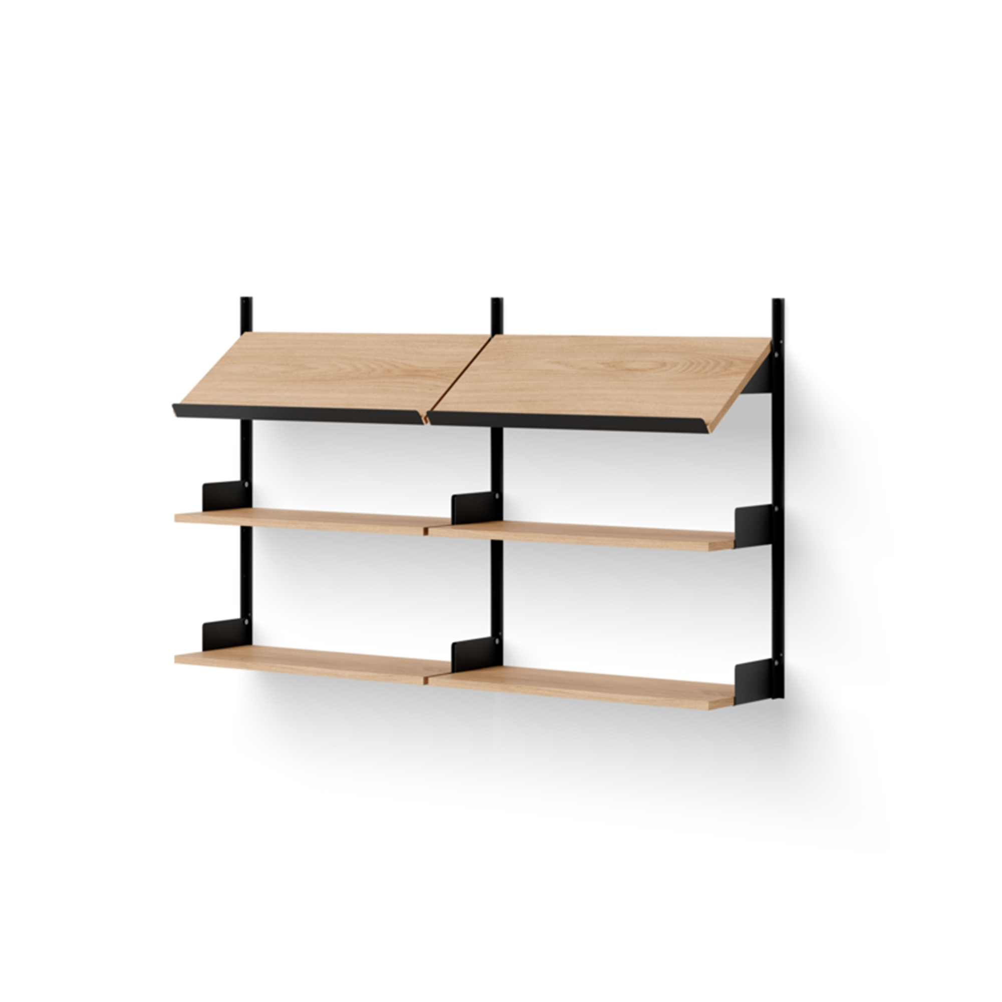 Sometimes the simplest pieces prove to be the most difficult to find, say, the quintessential wall shelf. With unDerstated Details and intelligible flexibility, the New Works shelving system aims to be just that. Designed to effortlessly blend into a variety of spaces, this simple shelving system continues New Works’ ongoing quest of creating elevated basics. Nothing is surplus and everything has been carefully attenDed to, like the angular profiles of the wall bars and the integrated bookends that keep your belongings in place. The shelves are neatly assembled with flat knurled screws in stainless steel, adding an honest yet refined Detail to the Design. A system that is meant to grow – in your home and in range – to accommodate various storage needs.