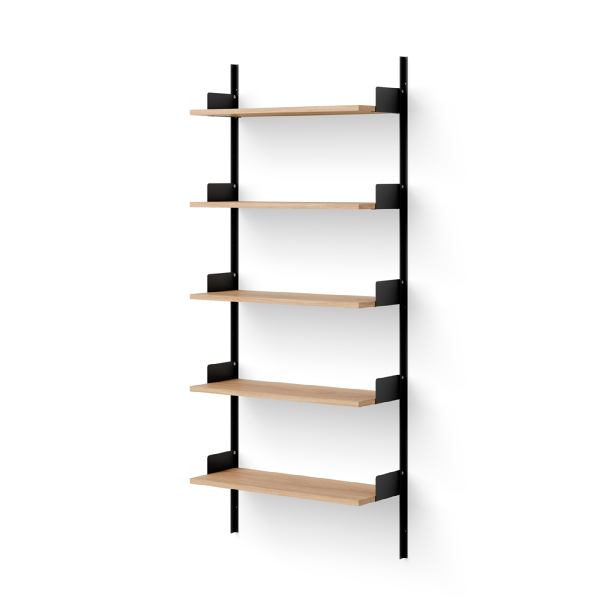 Sometimes the simplest pieces prove to be the most difficult to find, say, the quintessential wall shelf. With unDerstated Details and intelligible flexibility, the New Works shelving system aims to be just that. Designed to effortlessly blend into a variety of spaces, this simple shelving system continues New Works’ ongoing quest of creating elevated basics. Nothing is surplus and everything has been carefully attenDed to, like the angular profiles of the wall bars and the integrated bookends that keep your belongings in place. The shelves are neatly assembled with flat knurled screws in stainless steel, adding an honest yet refined Detail to the Design. A system that is meant to grow – in your home and in range – to accommodate various storage needs.