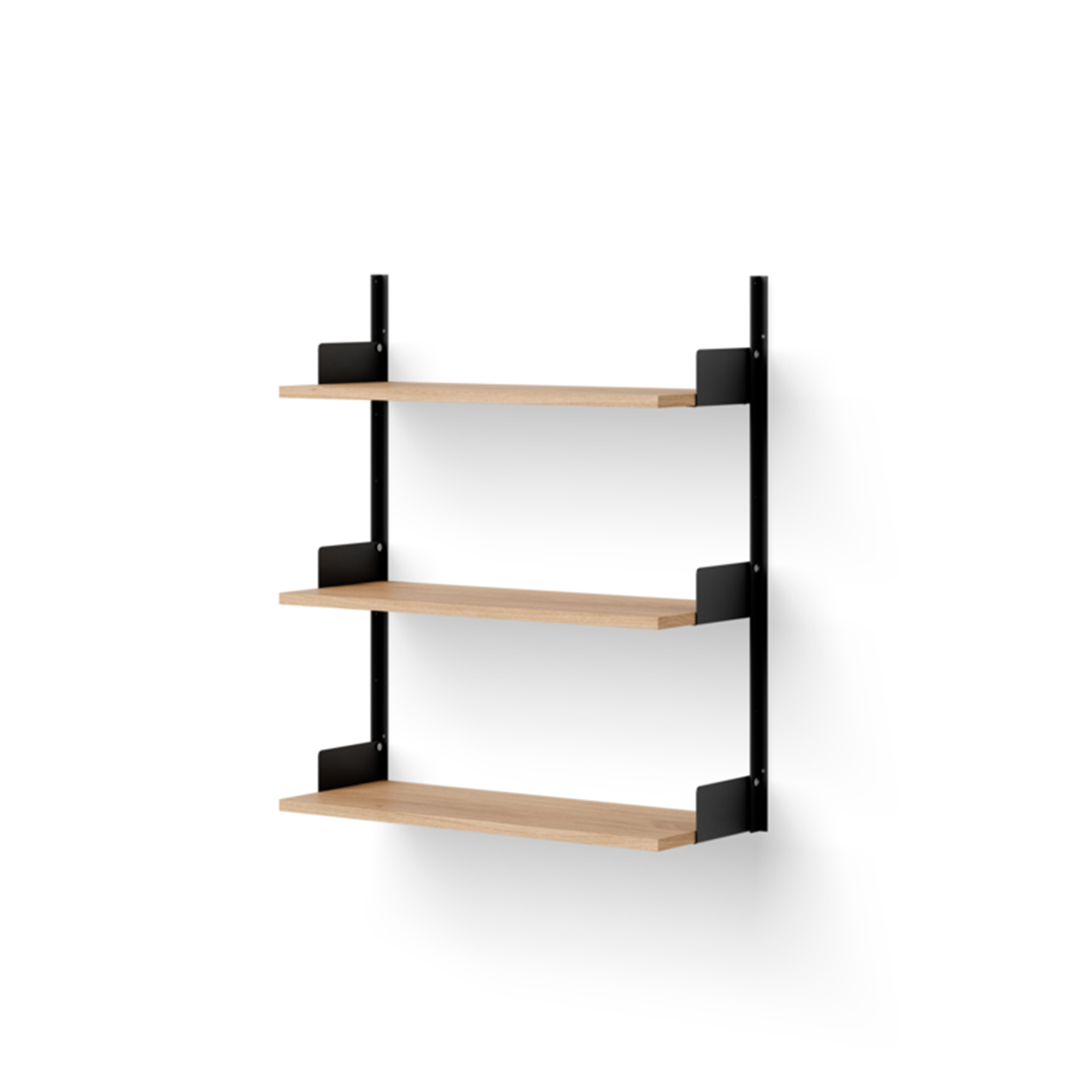 Sometimes the simplest pieces prove to be the most difficult to find, say, the quintessential wall shelf. With unDerstated Details and intelligible flexibility, the New Works shelving system aims to be just that. Designed to effortlessly blend into a variety of spaces, this simple shelving system continues New Works’ ongoing quest of creating elevated basics. Nothing is surplus and everything has been carefully attenDed to, like the angular profiles of the wall bars and the integrated bookends that keep your belongings in place. The shelves are neatly assembled with flat knurled screws in stainless steel, adding an honest yet refined Detail to the Design. A system that is meant to grow – in your home and in range – to accommodate various storage needs.