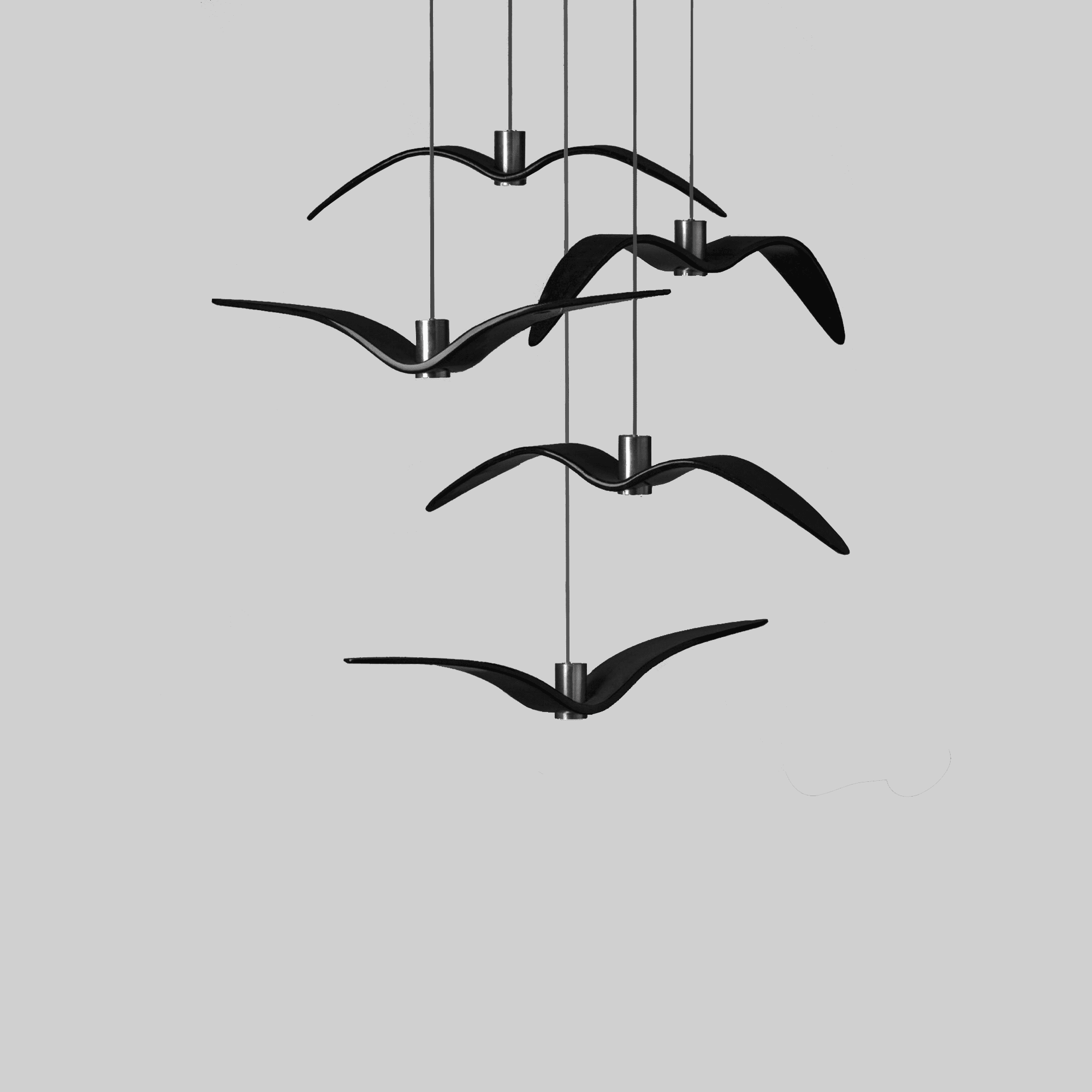 The collection’s restraint and directness are underscored by the minimalist LED light source set in a body of lacquered and polished aluminium. The Night Birds collection comprises three lights with different wing attitudes depicting the various phases of bird flight. The lights are available in white and dark variants. Night Birds work best in large flocks.Design: Boris Klimek