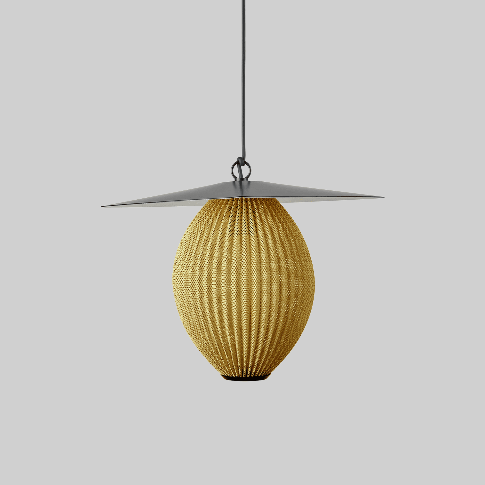 Building on the Satellite Collection of whimsical, modernist sculptural lamps, the Satellite Outdoor Pendant and Satellite Outdoor Floor Lamp are GUBI’s first lighting designs created specifically for outdoor use. Based on Mathieu Mategot’s original design concept from 1953, the designs feature an ovoid shade crafted from a perforated sheet of stainless steel, topped with an aluminum cap that helps direct the light. Playful and modern even 70 years after their first creation, both Satellite designs are ideal for installation on covered patios, verandas, or other sheltered dining areas. Two sizes of pendant are available, and both the pendants and the floor lamp are available with a semi-matt shade in either Cream White or Mustard Gold.