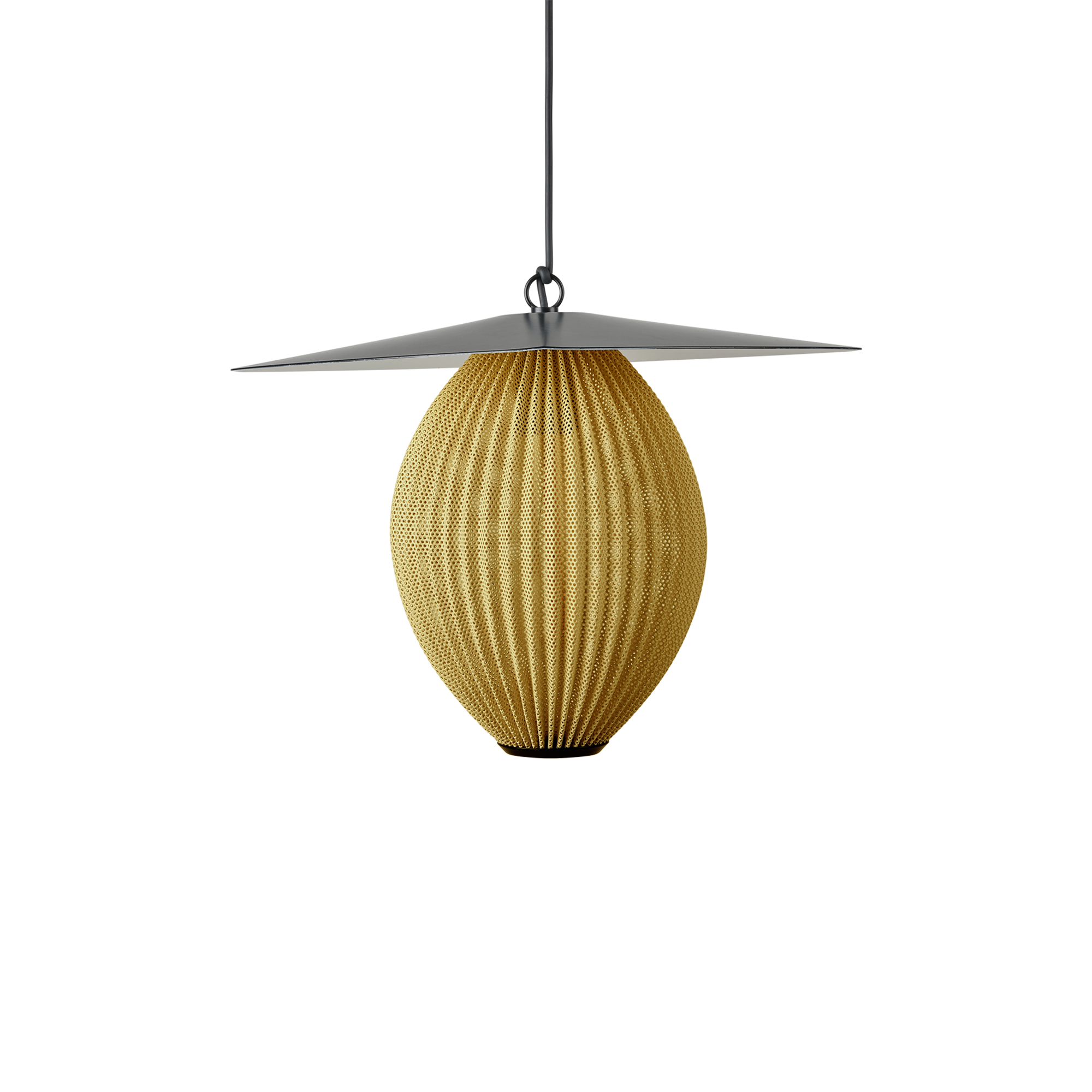 Building on the Satellite Collection of whimsical, modernist sculptural lamps, the Satellite Outdoor Pendant and Satellite Outdoor Floor Lamp are GUBI’s first lighting designs created specifically for outdoor use. Based on Mathieu Mategot’s original design concept from 1953, the designs feature an ovoid shade crafted from a perforated sheet of stainless steel, topped with an aluminum cap that helps direct the light. Playful and modern even 70 years after their first creation, both Satellite designs are ideal for installation on covered patios, verandas, or other sheltered dining areas. Two sizes of pendant are available, and both the pendants and the floor lamp are available with a semi-matt shade in either Cream White or Mustard Gold.