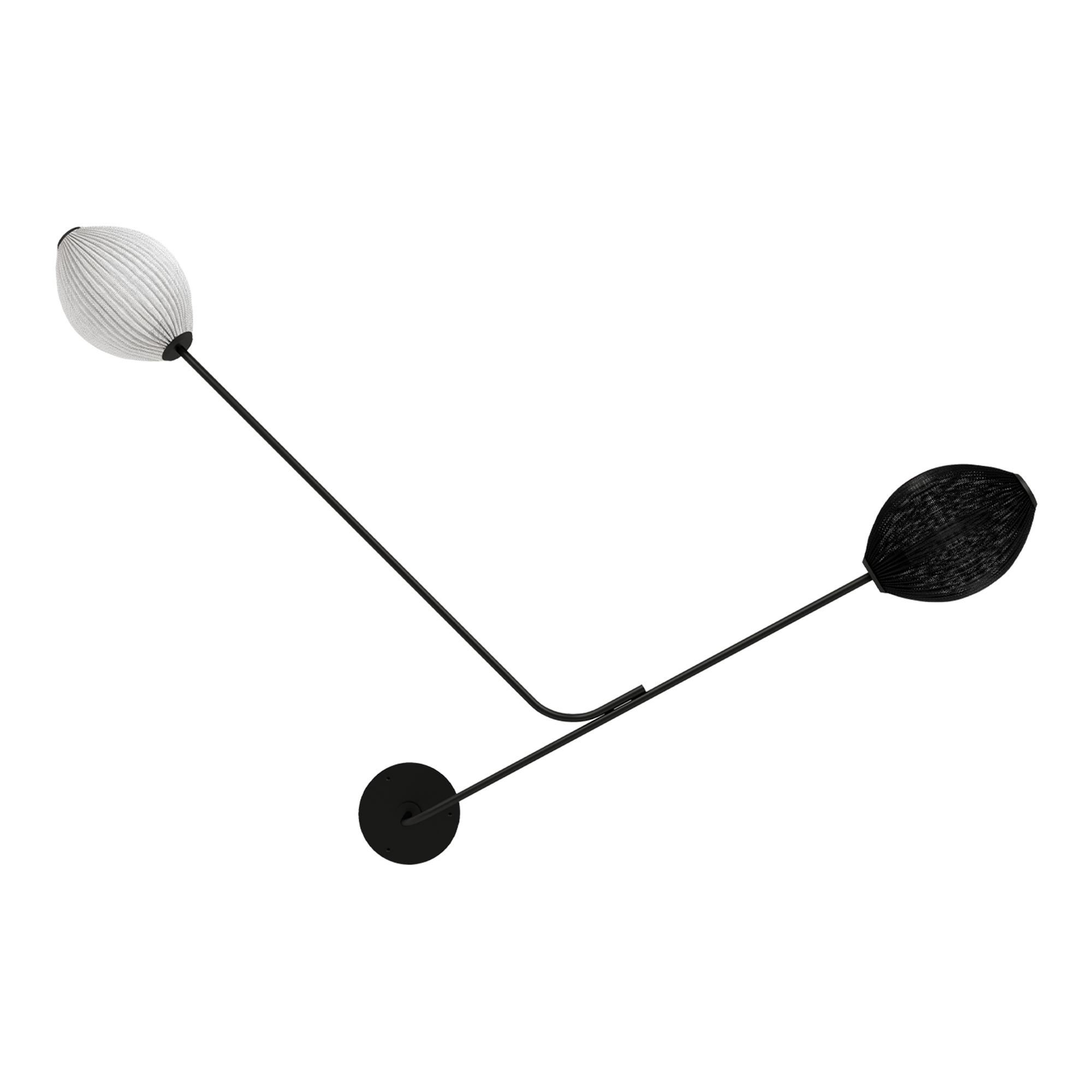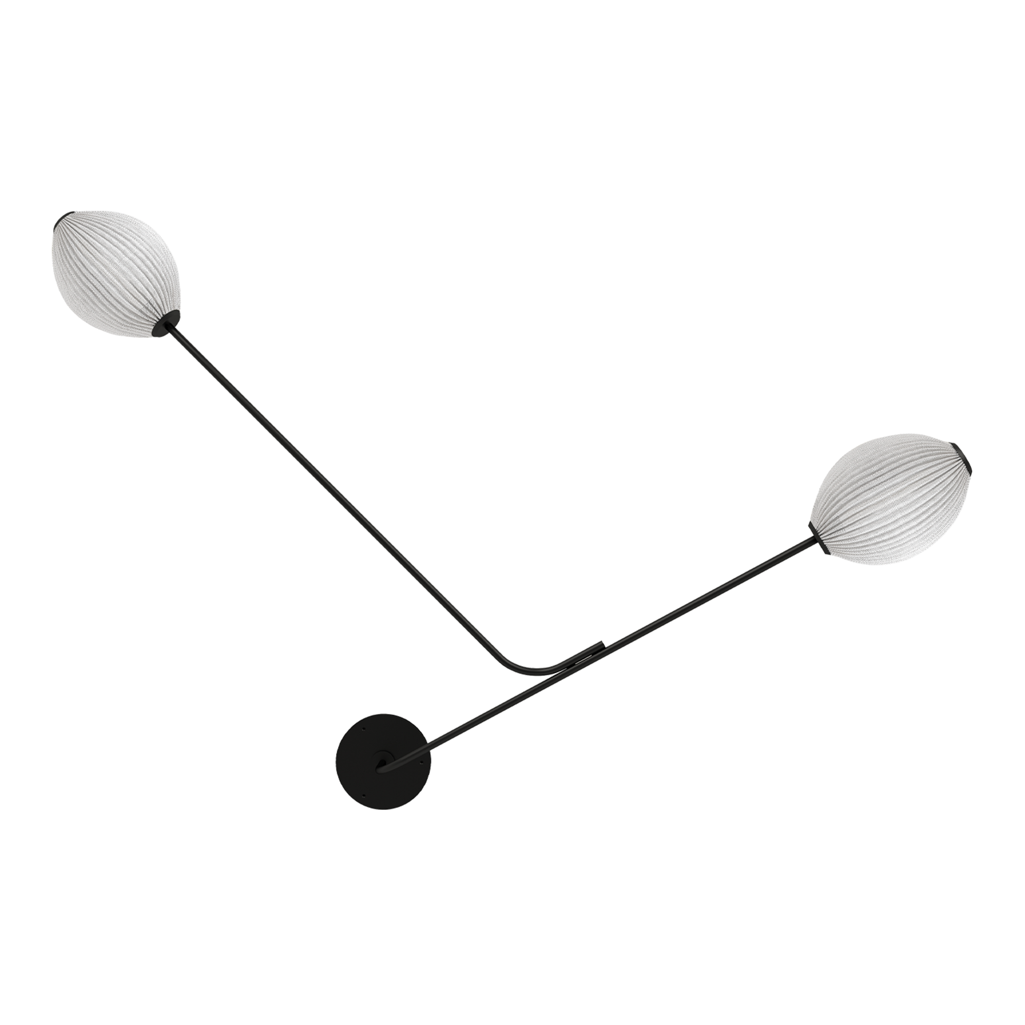 The striking, bold and playful Satellite Wall Lamp, designed by Mathieu Mategot, is available once again after a wait of nearly seventy years. With its geometrical shapes and finely-balanced arms creating outstanding sculptural aesthetics, the Satellite’s name and concept were Mategot’s tribute to the scientific progress and optimism found in post-war France.The Satellite Wall Lamp comprises two shades made from Rigitulle – Mategot’s technique of folding and bending perforated steel into an original oblong shaped lamp shade – which are mounted onto sculptural metal arms. The result is a unique interplay of transparency, weightlessness and balance, with a casting of light and shadow that is at once atmospheric and festive.The Rigitulle shades of the Satellite Wall lamp are available in Creamy White, Soft Black Semi Matte or a combination of the two, and mounted on a Soft Black Semi Matte fixture and arms. Despite the name, it can also be mounted to the ceiling to create a stunning centerpiece. Mategot’s long sought-after ‘balloons on string’ design can once again make a bold statement in any interior, whether at home, corporate workplace or in hospitality.