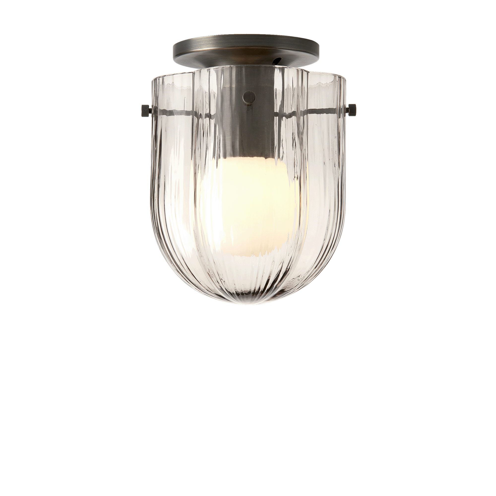 The Seine Collection by Space Copenhagen was inspired by the behavior of light in moving water, an effect that was captured through the use of patterned mouth-blown glass. The collection comprises of a Table Lamp, Ceiling Lamp, and Pendant, each of can be configured with a shade in Smoke, a lightly tinted translucent glass which reveals the inner structure of the lamp, or Coral, where the interior of the shade has been sand-blasted to create a clouded effect. Each Seine lamp draws on the power of glass to soften, layer, and blur light, creating a dreamy a reflective ambiance.