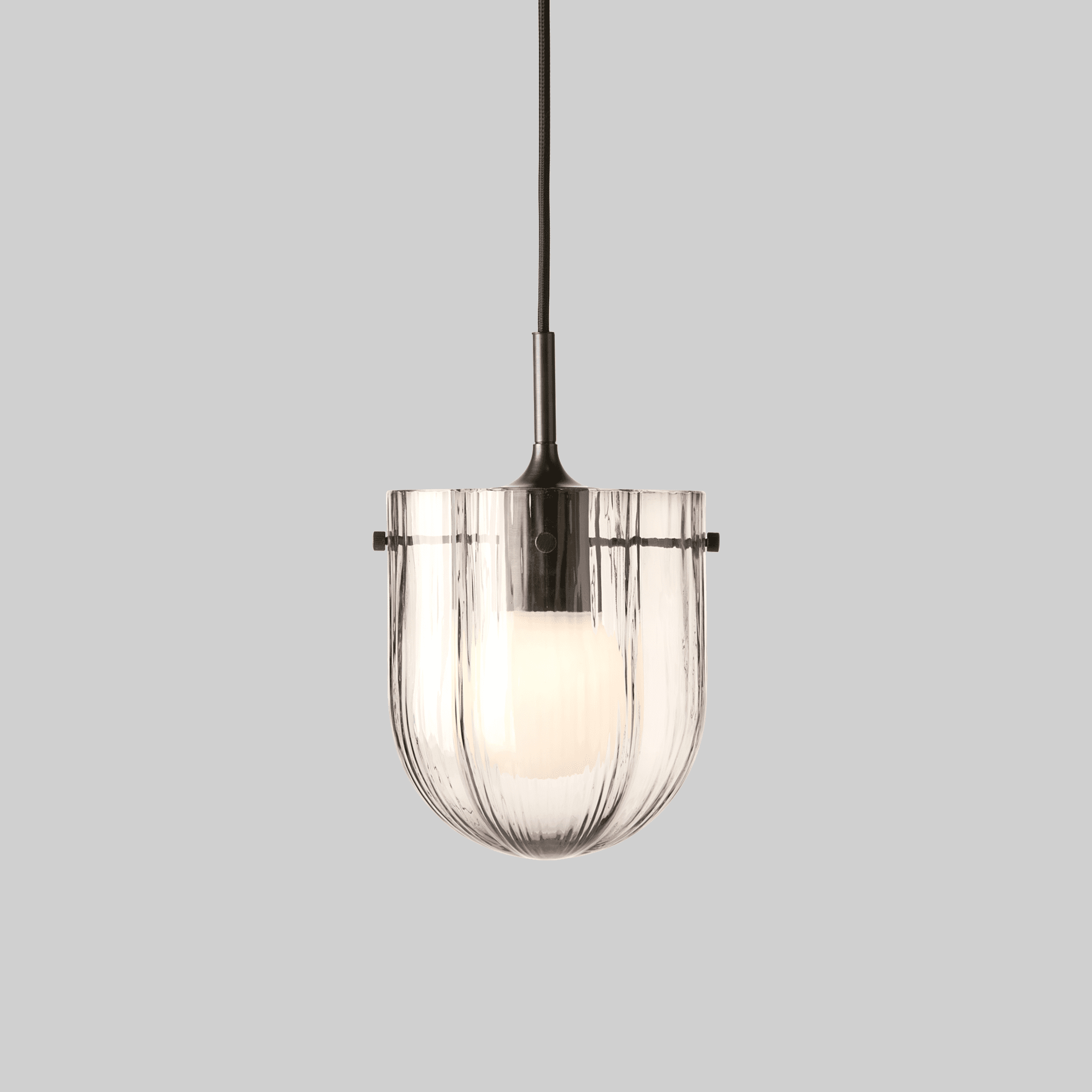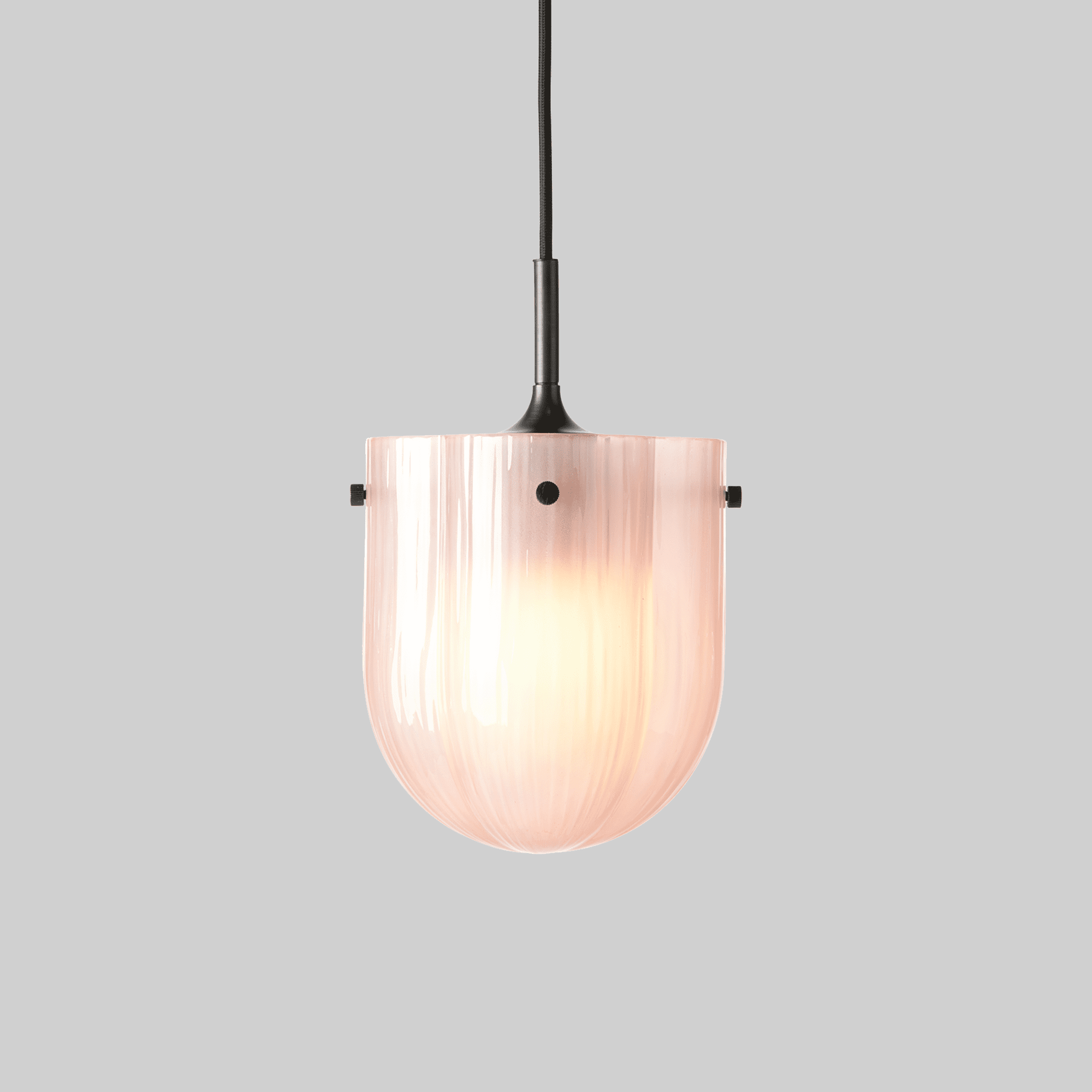 The Seine Collection by Space Copenhagen was inspired by the behavior of light in moving water, an effect that was captured through the use of patterned mouth-blown glass. The collection comprises of a Table Lamp, Ceiling Lamp, and Pendant, each of can be configured with a shade in Smoke, a lightly tinted translucent glass which reveals the inner structure of the lamp, or Coral, where the interior of the shade has been sand-blasted to create a clouded effect. Each Seine lamp draws on the power of glass to soften, layer, and blur light, creating a dreamy a reflective ambiance.