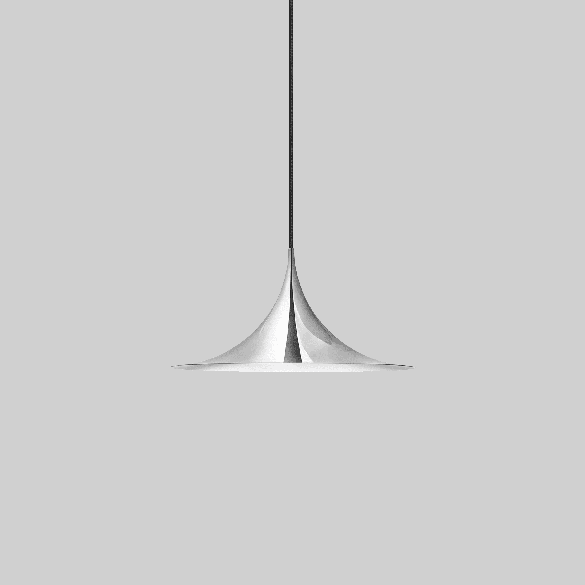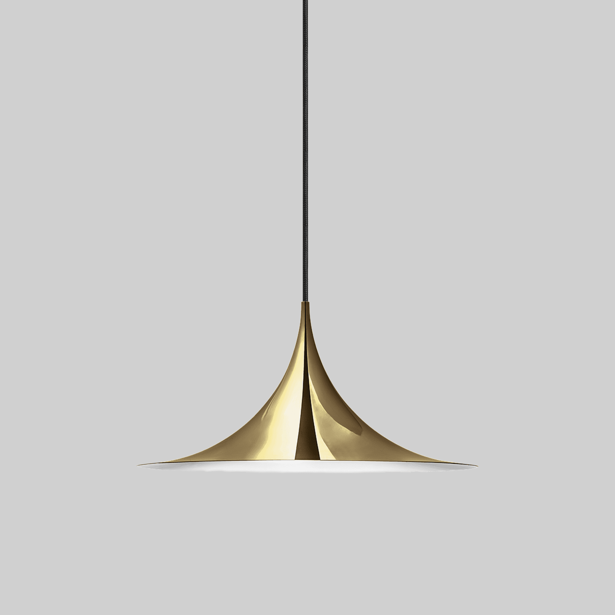 The Semi Pendant is a unique pendant lamp, based on two quarter-circles put together, back-to-back. It’s distinctive arch-shaped, enamelled metal shade creates a diffused, cone-shaped light, ideal over a dining table or kitchen work surface. With its lightness of form, unique timeless design and range of colours and sizes, the Semi Pendant is extremely versatile and well suited to both private and public spaces.The Semi Pendant was designed in 1968 as a product of the creative partnership between Claus Bonderup and Torsten Thorup. Reacting against the soft organic forms, the so-called cosy era, that was dominating Denmark at the time, Bonderup and Thorup wanted to create a lamp that incorporated sharp, clean lines and a geometric shape. Their design was submitted for a competition at the Royal Danish Academy of Fine Arts, School of Architecture and won first prize. In the 1980s the pendant achieved great success and became, at that time, the best-selling Danish design and gained worldwide recognition and iconic status.