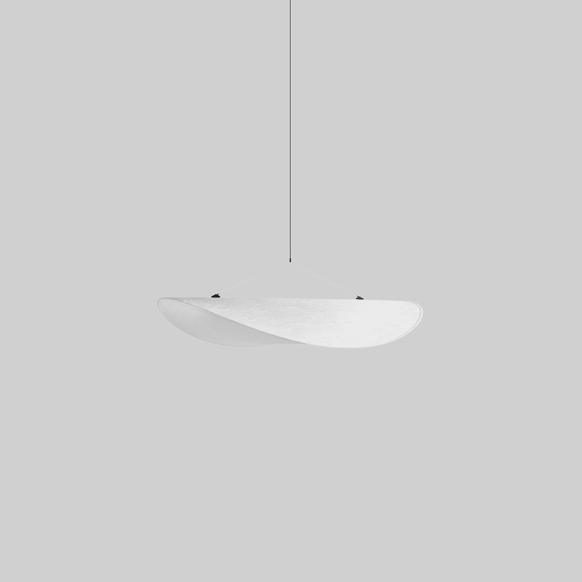 Stretching to over one metre in length, the Tense pendant lamp appears like a soft cloud has floated in. A truly modern construction, its soft Tyvek diffuser represents a material both durable and soft – whilst being 100% recyclable. The flexibility of this paper-like diffuser allows its slim frame to accentuate the cloud like qualities of the Tense pendant lamp. Finished with a slimline LED light source, all components fit into a tube for ease of transport. A truly modern approach to lighting.