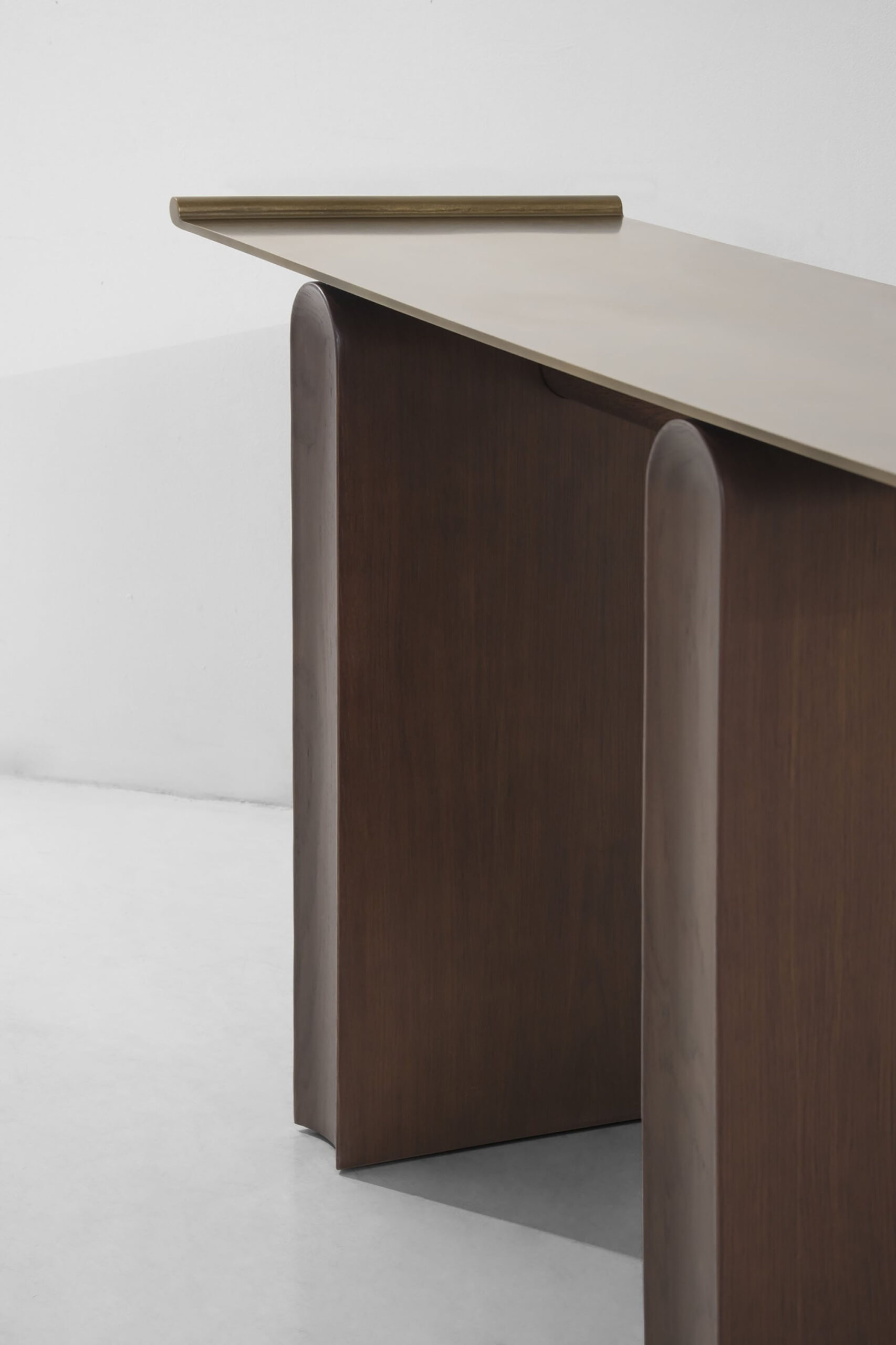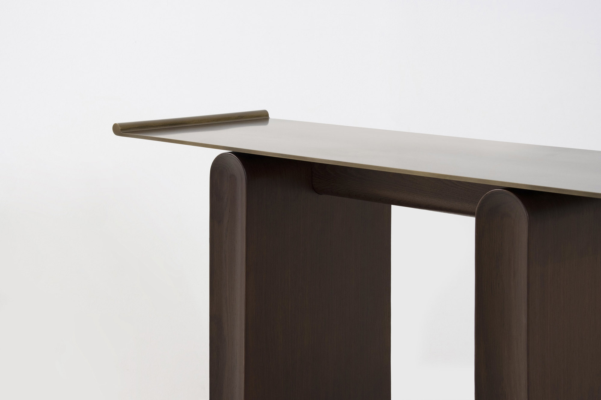 Inspired by Vietnamese traditional altars, the Tonkin table is an exercise in capturing the stillness of motion in everyday objects. The silhouette is pared down to classic clean lines. While its rectangular oak base curves at the top and features concave contours on the legs, the tabletop brings in a touch of lightness with its thin steel frame that gently curls up on both ends. The Tonkin table stands for District Eight’s craftsmanship to underline structural clarity in design, and transform local inspirations to new contemporary expressions.