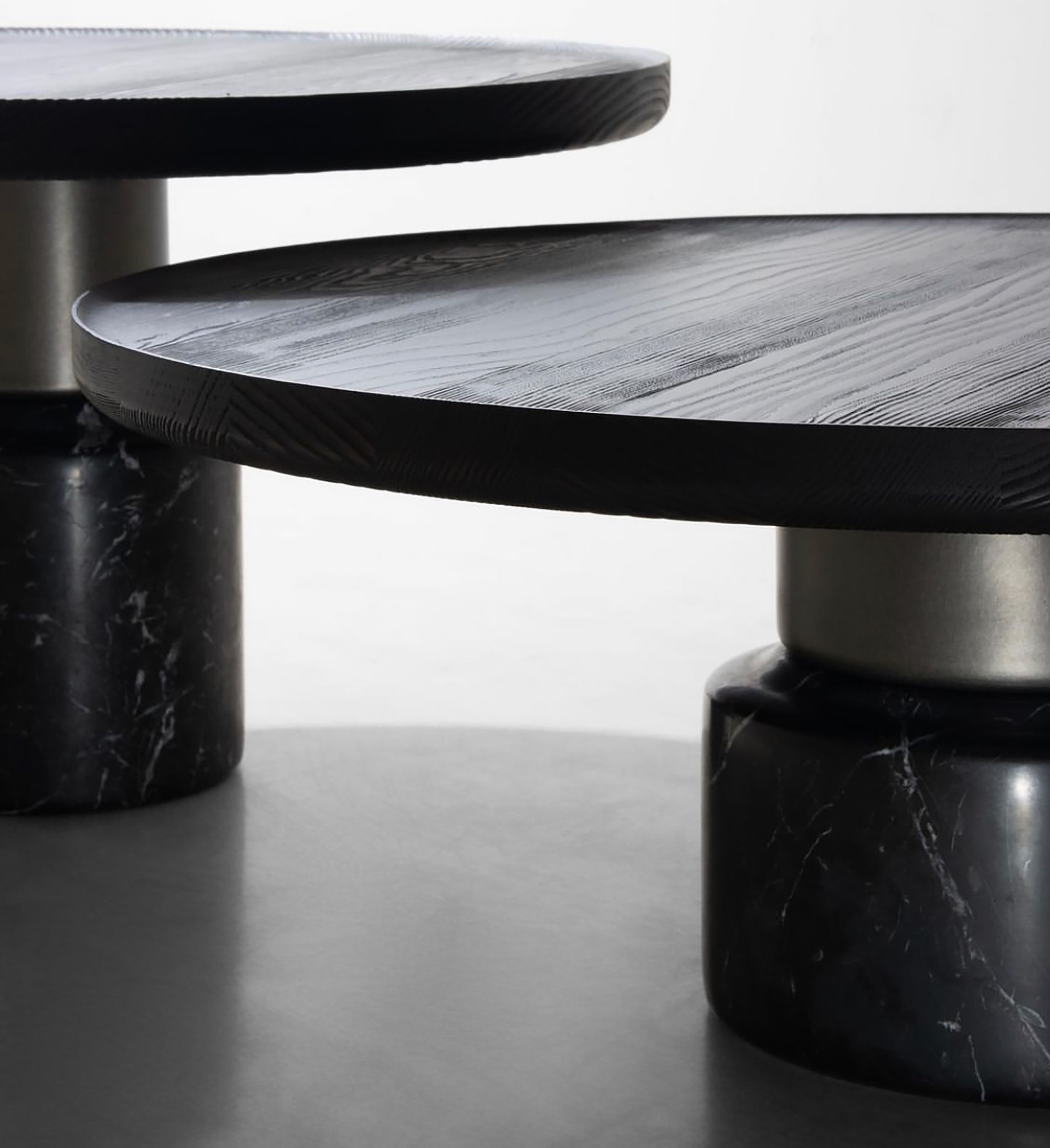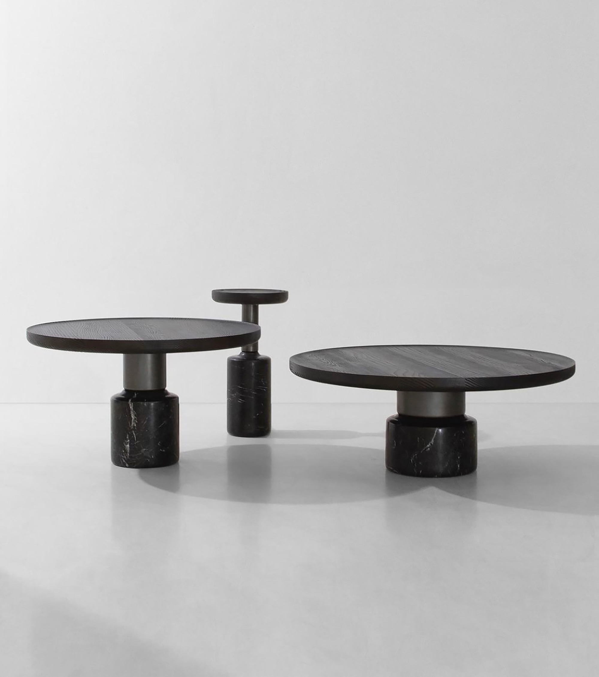 A collection of side and coffee tables, Torus blends together contrasting textures and materials to achieve a sense of unity, and sculptural beauty. Its design creates a well-proportioned structure, with a cylindrical base made of natural block marble and steel jointly balanced by a round timber top, hand-finished and features a raised rim. Simple yet singular, Torus can give weight to a diverse set of styles in contemporary settings, and fit well with District Eight’s collections of chairs.