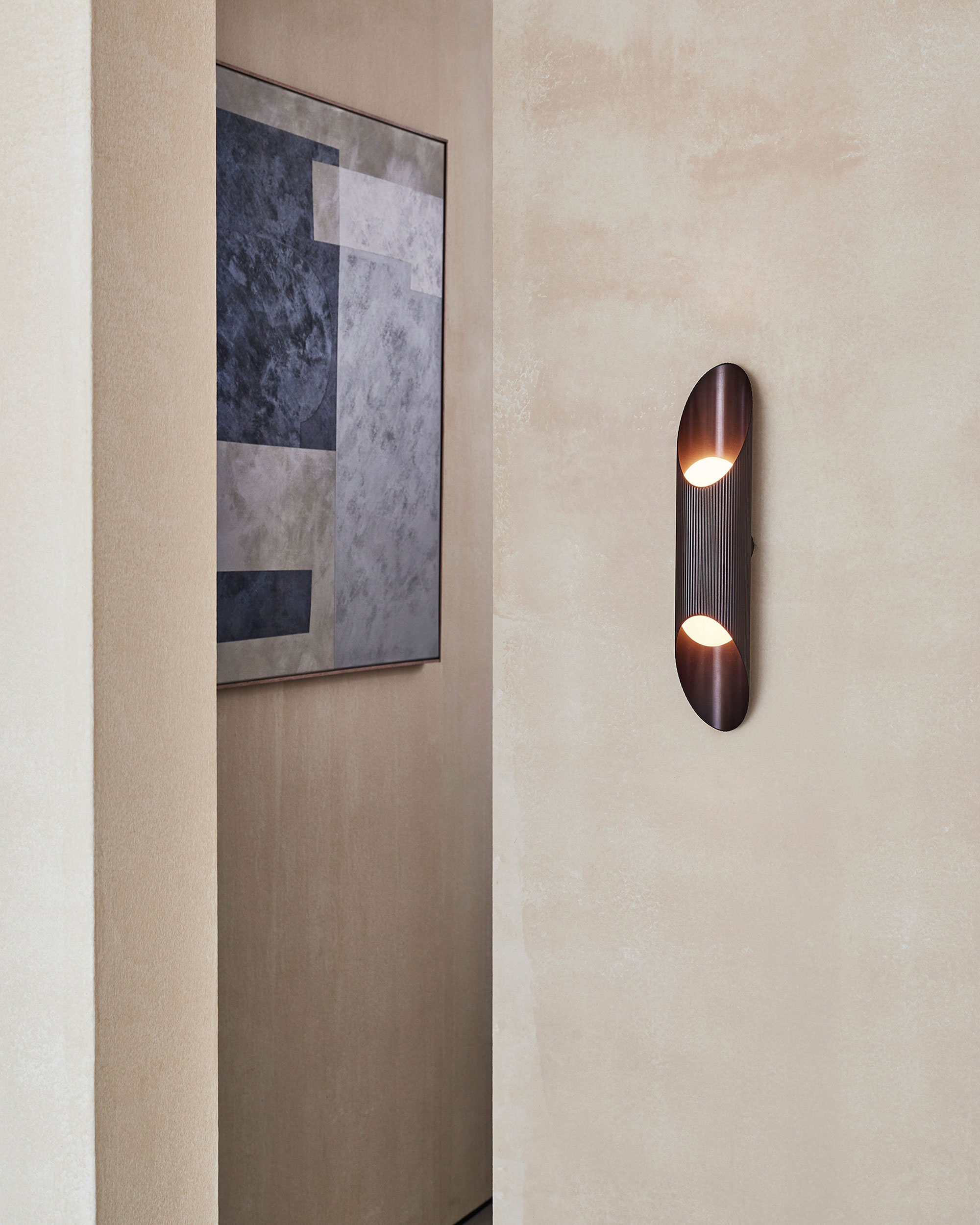 Bold geometry meets rich texture in the Vector Wall Light, where mid-century inspiration is reimagined through a contemporary silhouette.