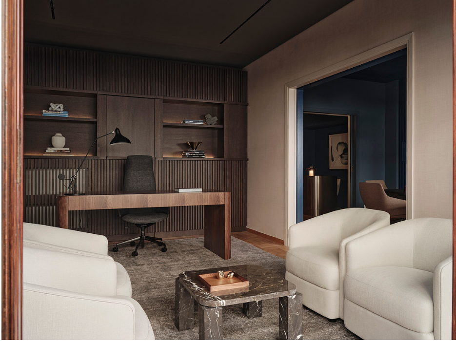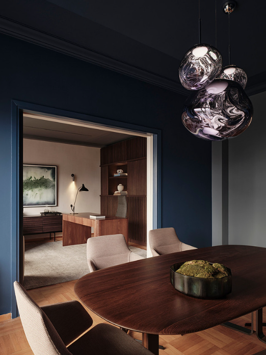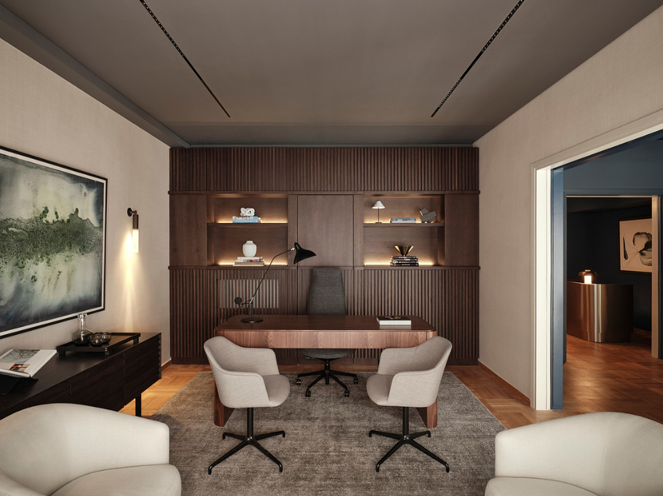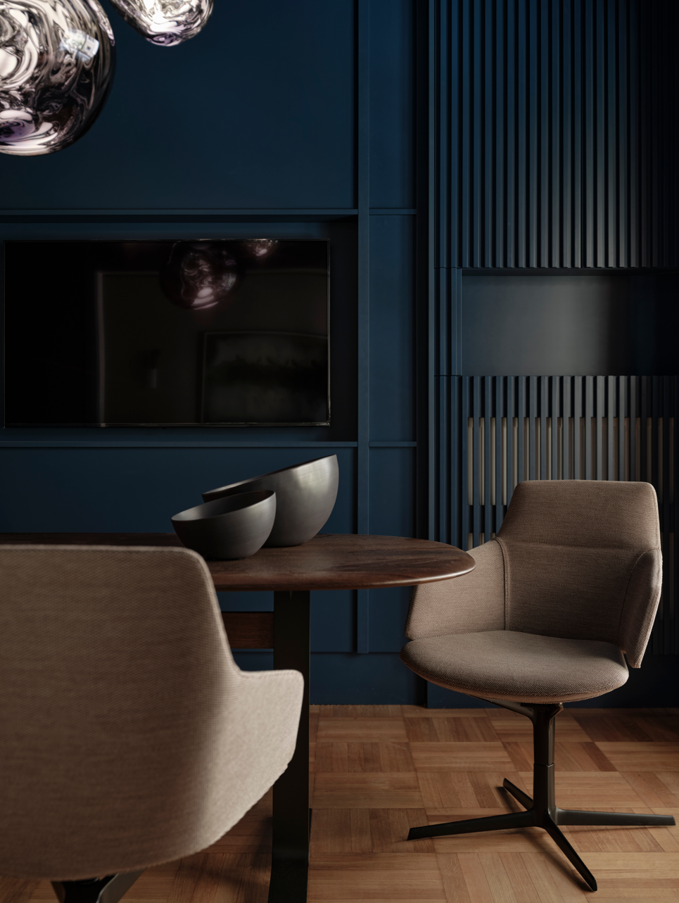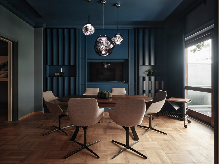 Inspired by the tranquil and transformative nature of water, BOX INTERIORS envisioned the interiors of these central company offices in Kolonaki to embody calmness, fluidity and balance. The design concept draws deeply from the essence of water -its reflective, ever-shifting qualities – translated into deep blue wall tones that evoke depth and stillness. An intentional element of contrast flows throughout the office, expressed in the dialogue between spaces. While each area carries its own identity, there is a harmonious gradient effect within them – subtle variations in tone, texture, and material that create layered depth and visual continuity. Organic forms in furniture, lighting elements and art pieces further echo the theme, creating a cohesive visual language throughout. Beyond its aesthetic resonance, the space has been designed with a strong emphasis on functionality. Each zone supports diverse work dynamics – offering areas for focused individual tasks, collaborative meetings and social connection – ensuring that the environment performs as seamlessly as it inspires. BOX INTERIORS was entrusted with the full scope of this project, overseeing interior design, FF&E specification, art consultancy and the creation of custom furnishings and millwork that complete the cohesive vision.